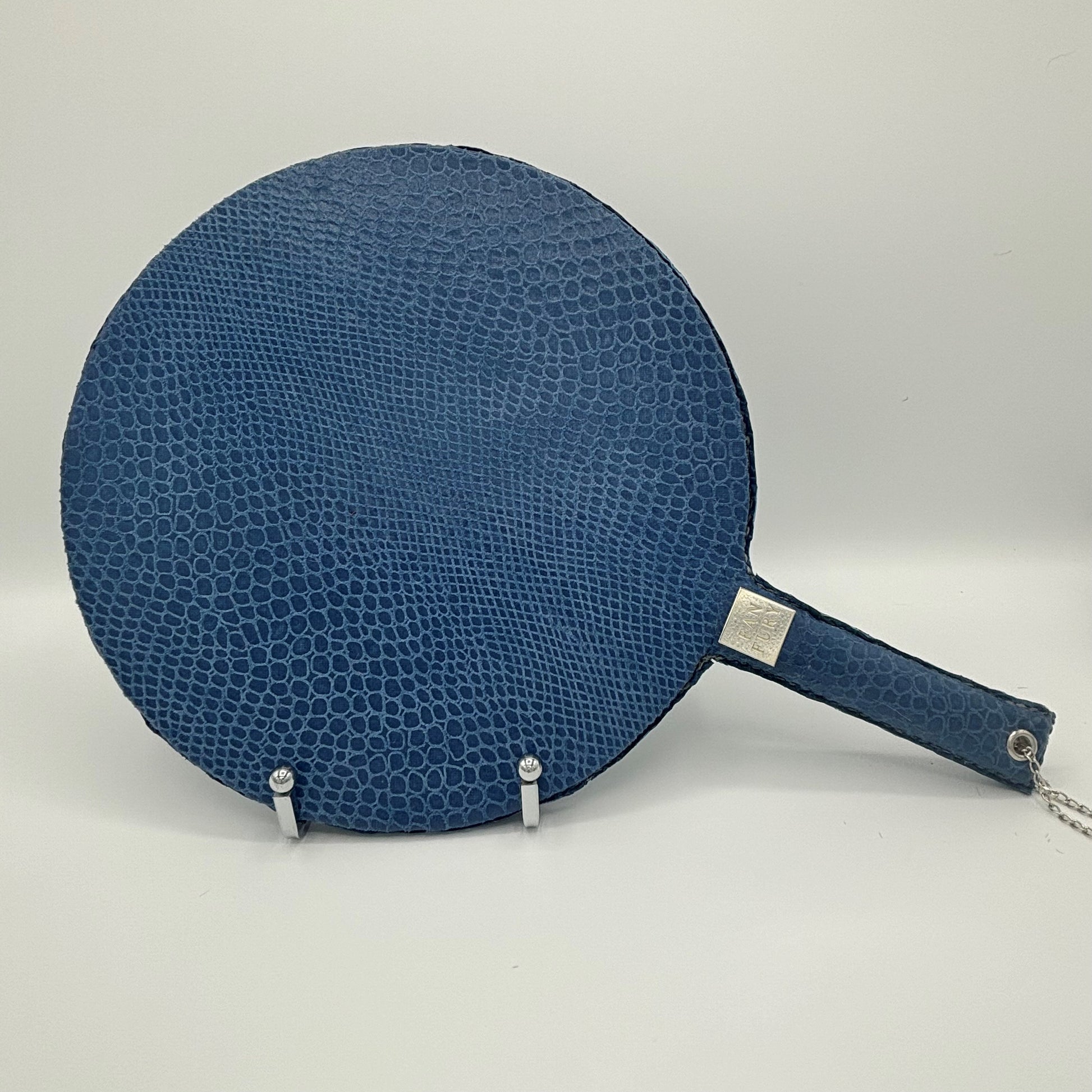 Large Blue Snake Print on Pig Skin fan